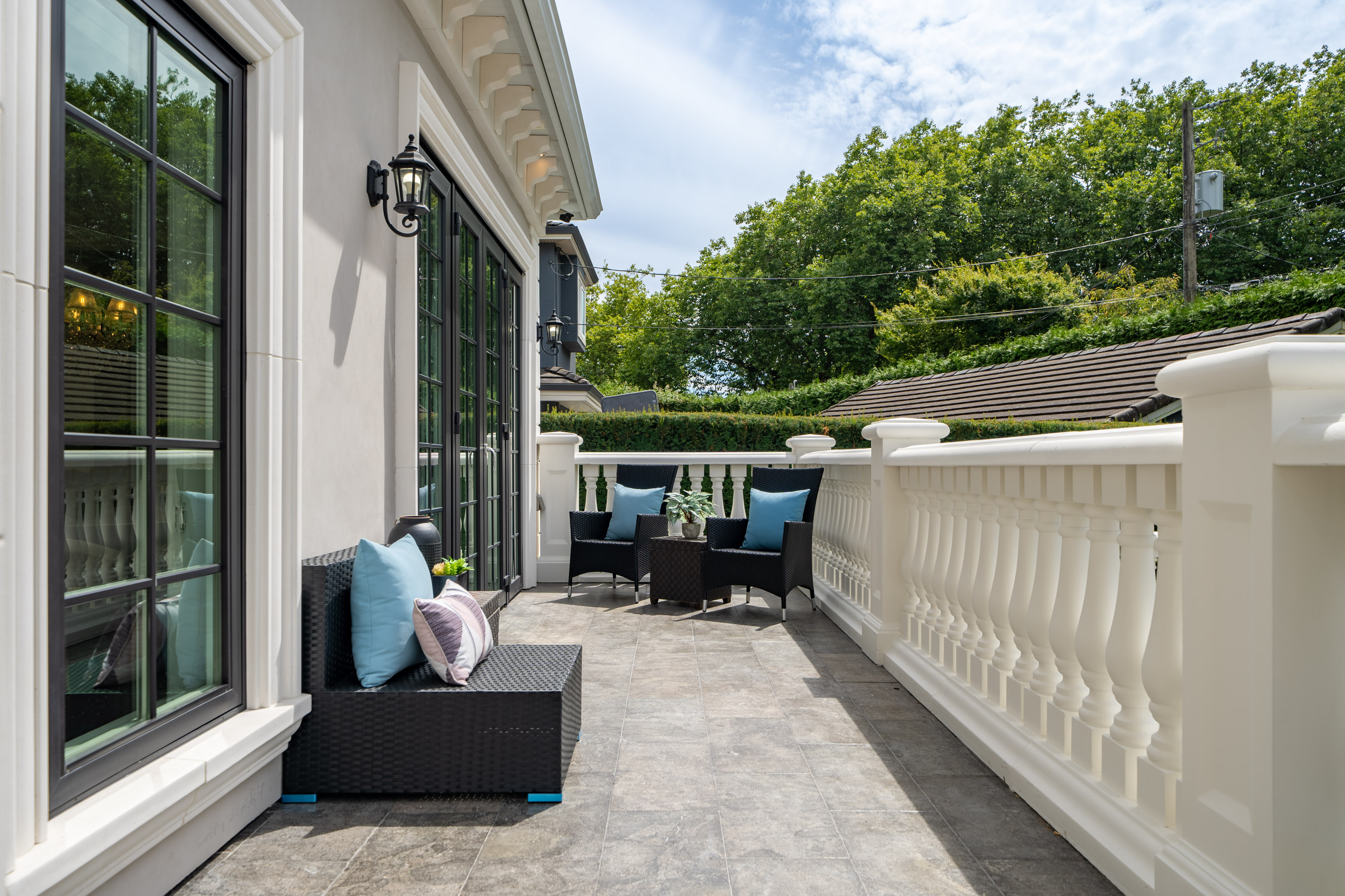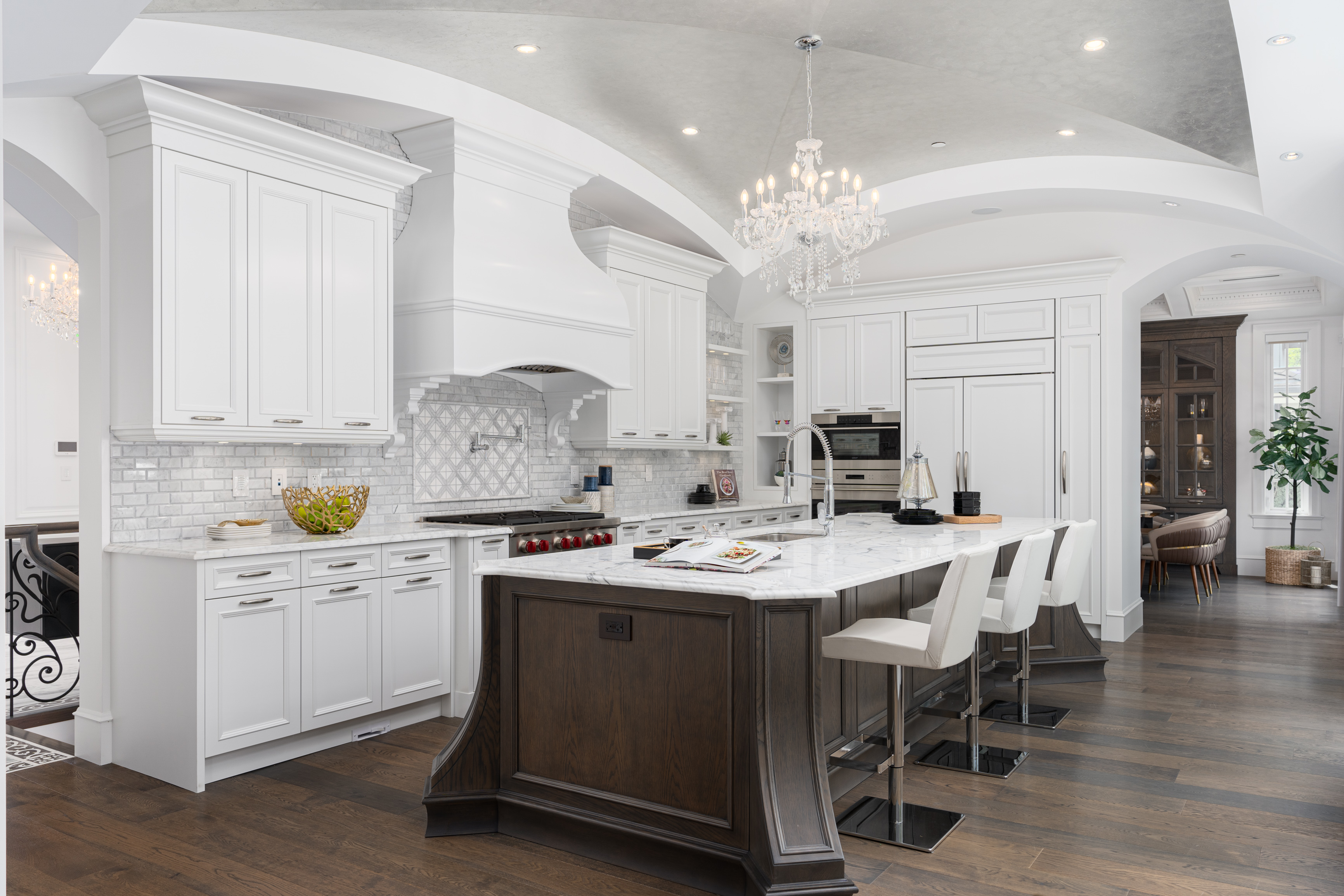 Exterior clad in limestone custom moulding, custom maple cabinetry, all bedrooms ensuited, two laundry rooms. You can feel the quality of the finishes as you walk through Château de Bellevue — Welcome home.