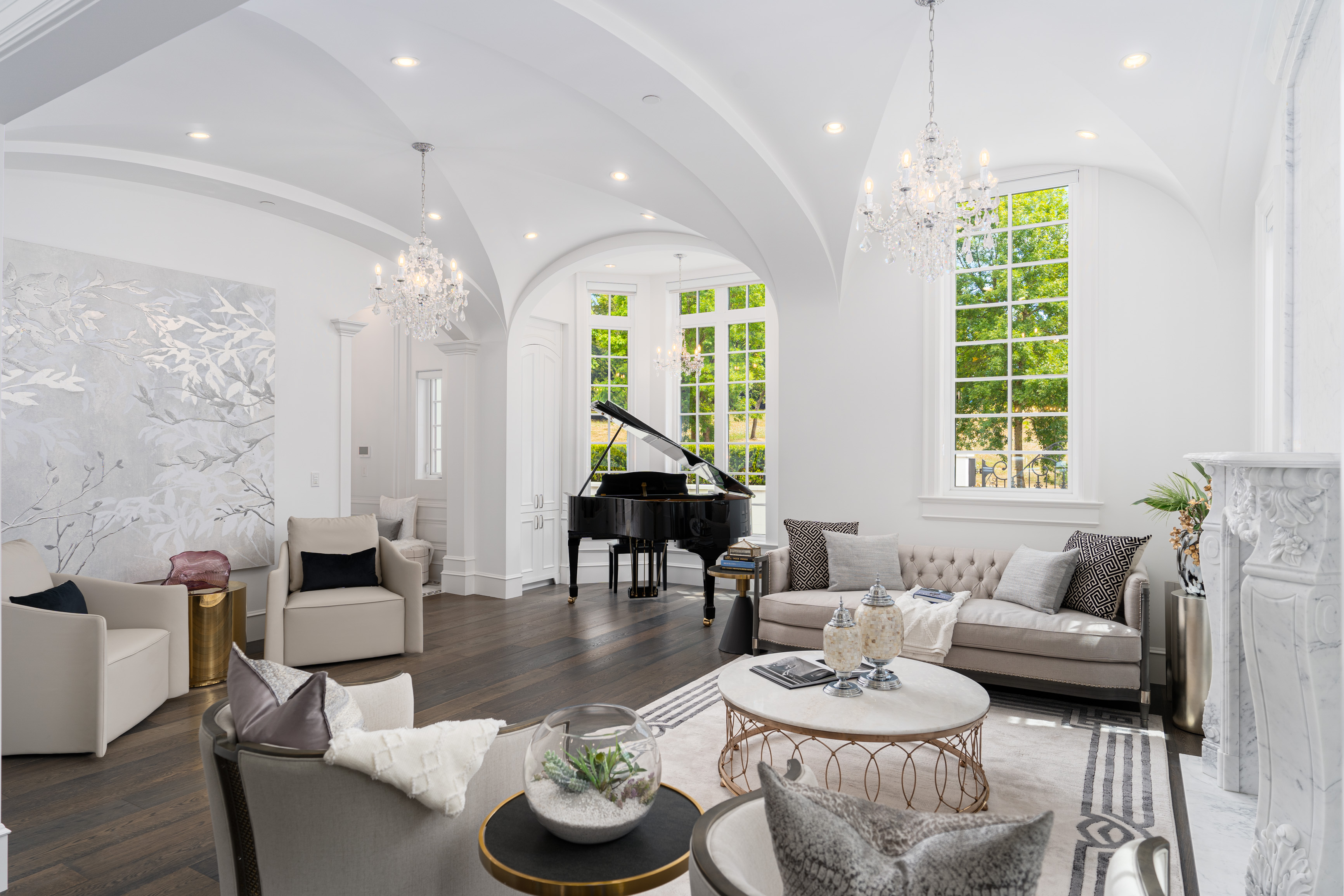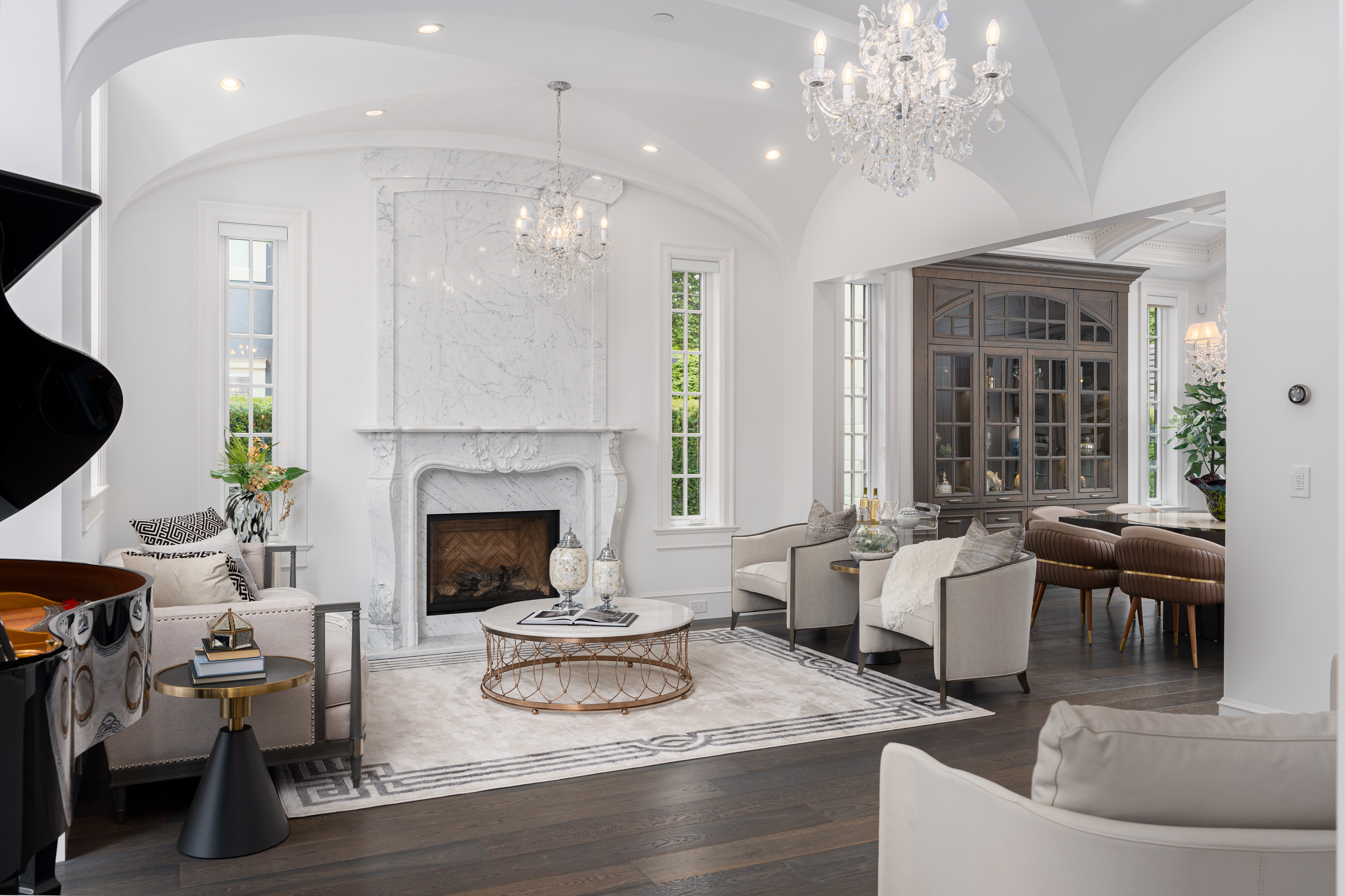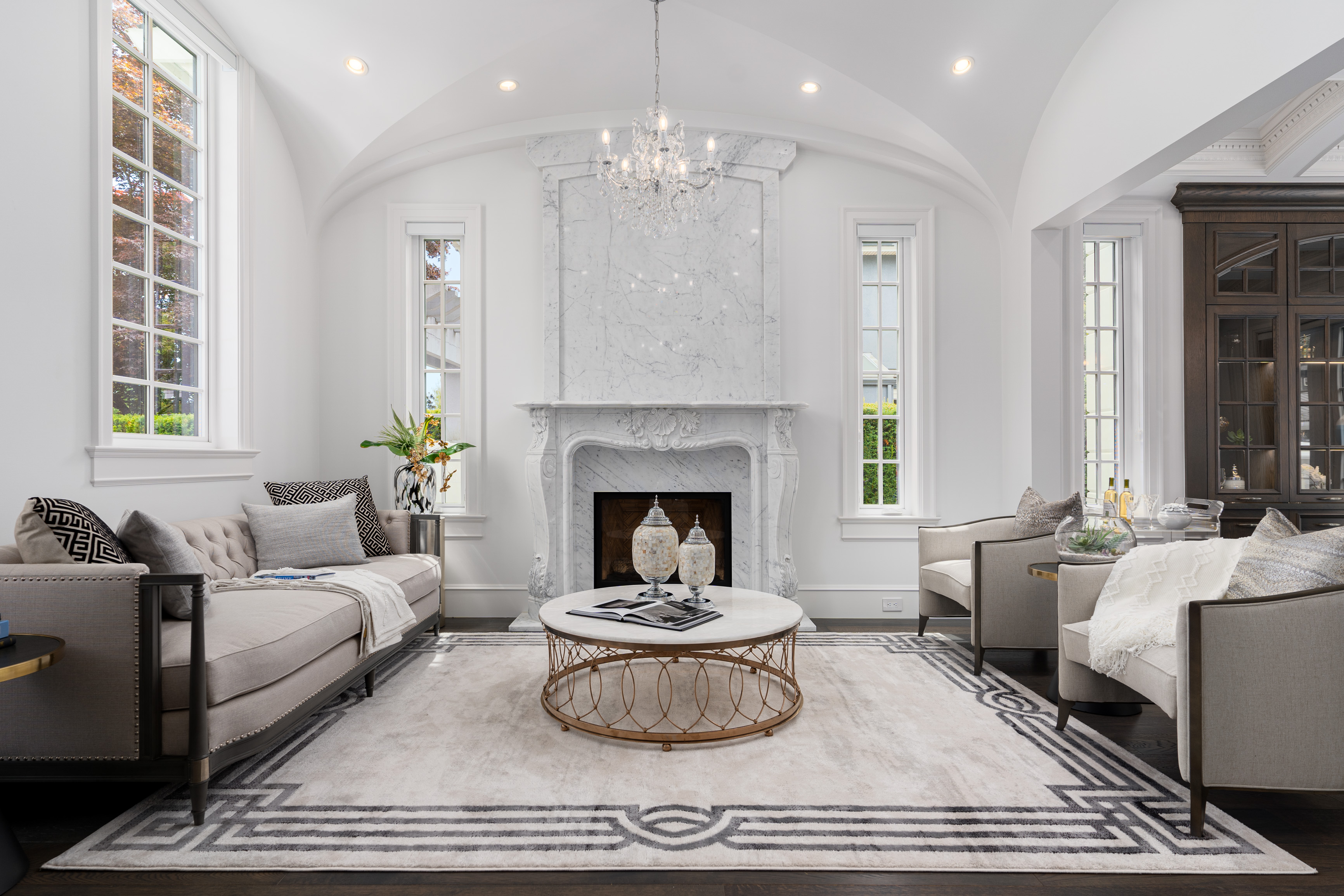 Château de Bellevue is an exquisite, world-class mansion in Southwest Marine that seamlessly blends elegance with class. Stunning statuario marble finishes with waterjet inlay details, European hand-made lead glass ceiling, custom silver-leafed pressed groin-vaulted ceiling, full indoor spa including a pool, jacuzzi, steam room, sauna, and gym.