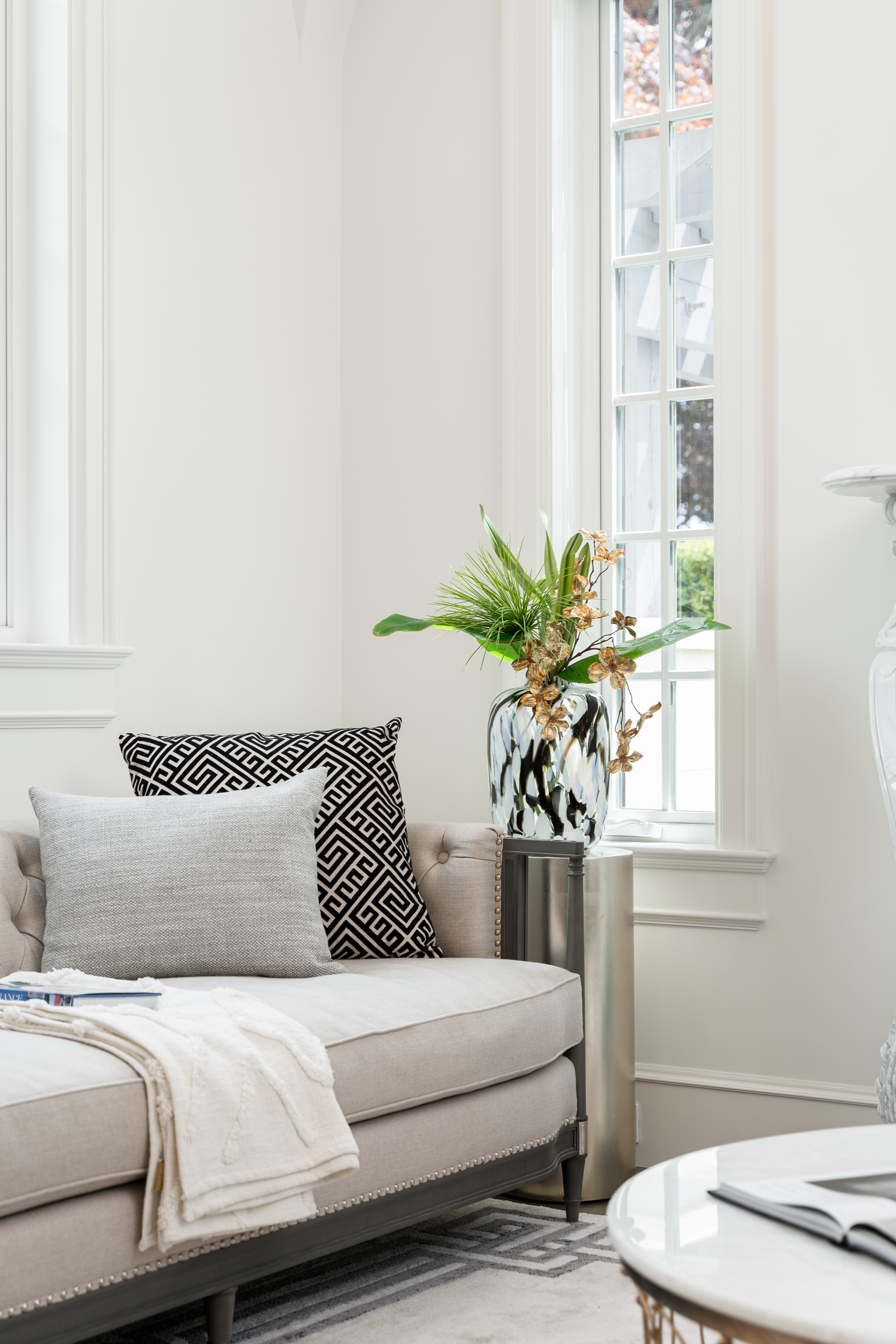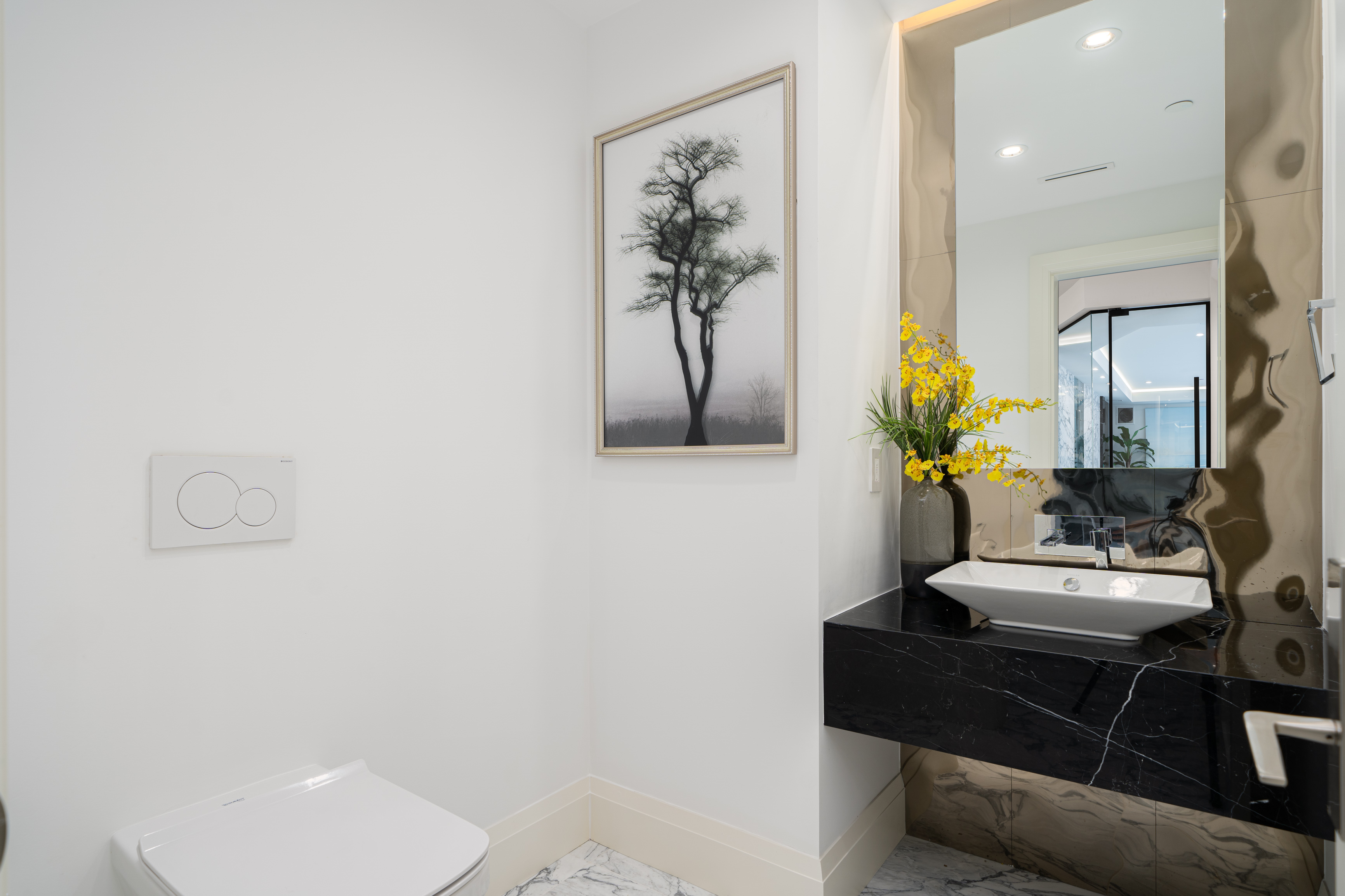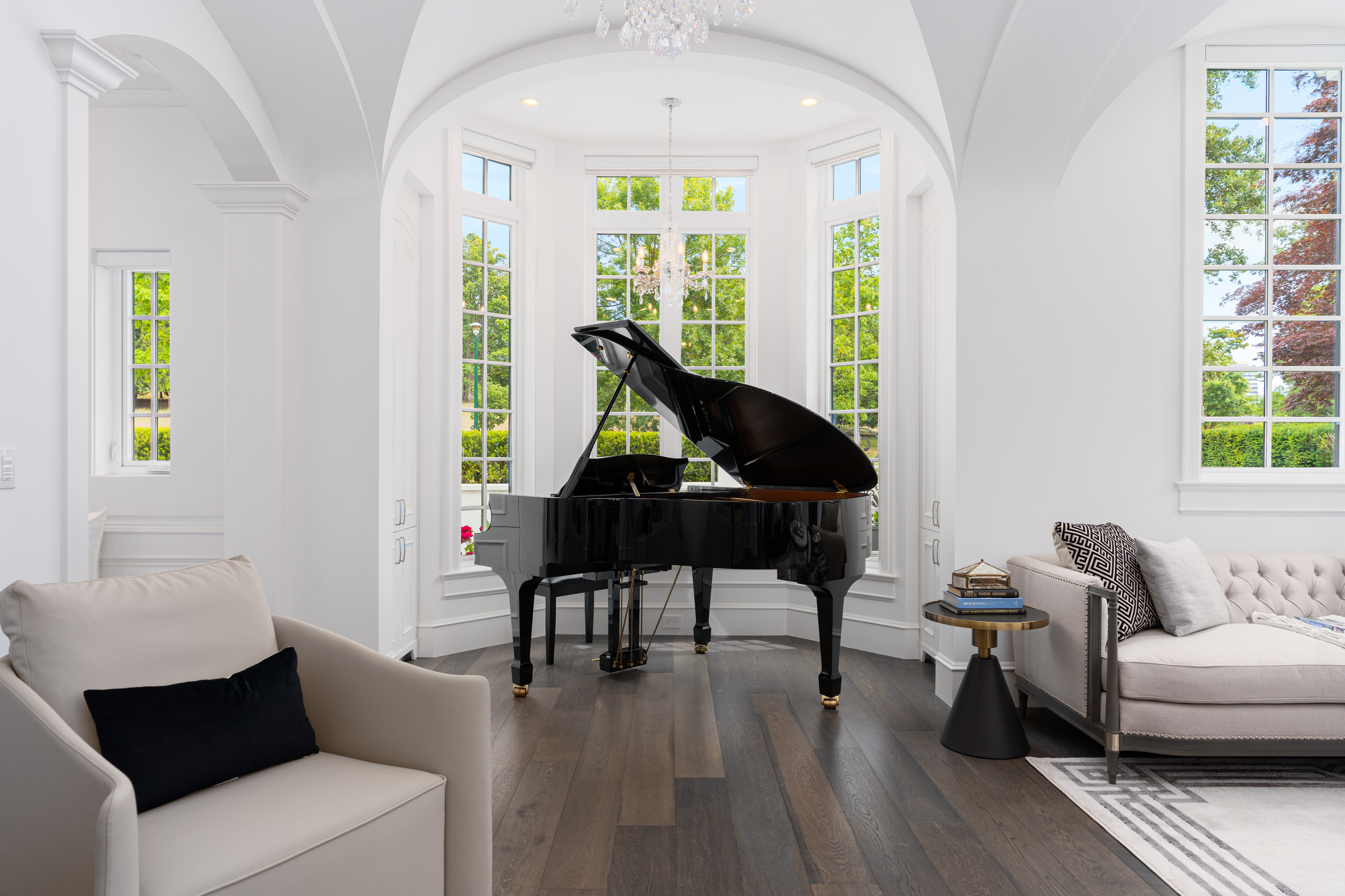Château de Bellevue is an exquisite, world-class mansion in Southwest Marine that seamlessly blends elegance with class. Stunning statuario marble finishes with waterjet inlay details, European hand-made lead glass ceiling, custom silver-leafed pressed groin-vaulted ceiling, full indoor spa including a pool, jacuzzi, steam room, sauna, and gym.